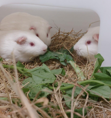 Para garantir seu bem-estar, são mantidos em alojamentos apropriados, com controle de temperatura, umidade e iluminação. A alimentação é balanceada, composta por ração peletizada, feno, vegetais frescos e água limpa. Também são adotadas práticas de enriquecimento ambiental como túneis, feno e forração de maravalha, estimulando comportamentos naturais e contribuindo para qualidade de vida desses animais para pesquisa.